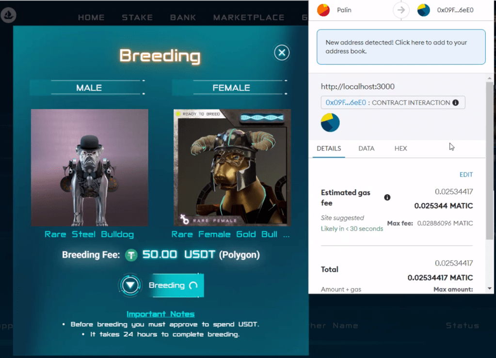 5. Once you confirm the transaction you would have completed all the necessary steps to Breed your CYBERDOGZ. Gestation period is 24 hours, so you’ll have to wait 24 hours before you receive your CYBERPUP.